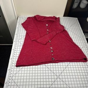 Soft Surroundings Mixed Button Crystal Rhinestone Shimmery Red Tunic Sweater L