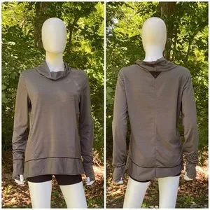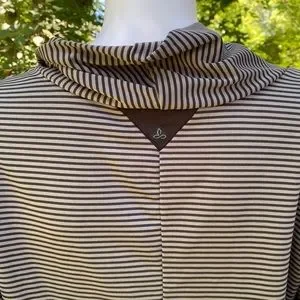 prAna Women's Marin Pullover Top in Black Stripe. Size M. The prAna marin pullover top is great for layering! Cowl neck, stripe is articulated around princess seams. Approx 25” long, 20” armpit to armpit, 28” shoulder seam to cuff. EUC! Item #3506