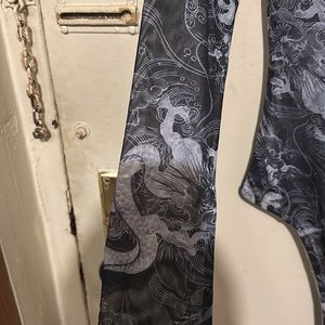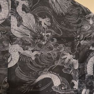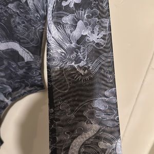 Oriental printed ‘DRAGON MAMA’ Mesh See Through Bodysuit in Grey Size Small BRAND NEW NO TAGS