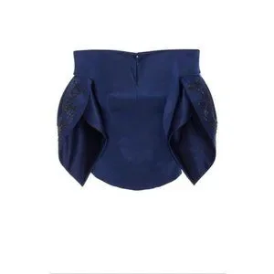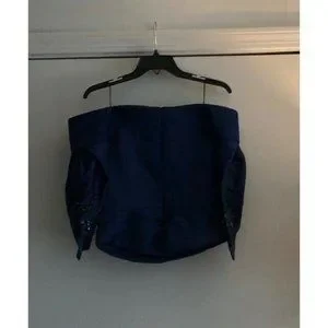 NWT Zac Posen off the shoulder top in midnight/royal blue/navy. It is a stunning top to pair with dress pants or skirt. Made of Double Face Duchess