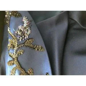 satin, this top features split 3/4 length sleeves with black and iridescent sequin beading. A unique, one of kind item. The perfect alternative to wearing an evening dress or gown. Simply stunning. Has molded cups, a corseted boned interior for support, fully lined, and back zip. Originally retailing for $2990, this Zac Posen top features a off the shoulder neckline with a center slit,and asymmetrical sleeves. Made in Italy. In US size 8.