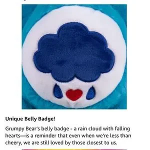 • UNIQUE BELLY BADGE - Grumpy Bear's belly badge - a rain cloud with falling hearts- is a reminder that even when we're less than cheery, we are still loved by those closest to us.