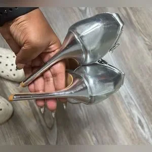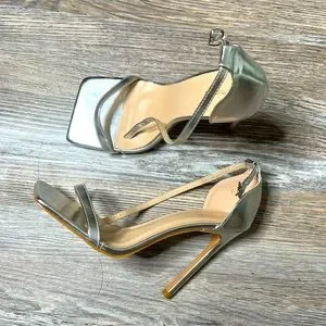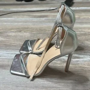 NWOB Silver Pretty Little Thing Square Toe Heel sz 9