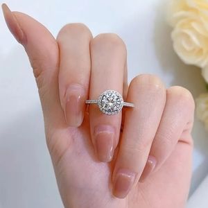 Certified 2ct t.w. Moissanite Round Halo Engagement Wedding Ring NEW