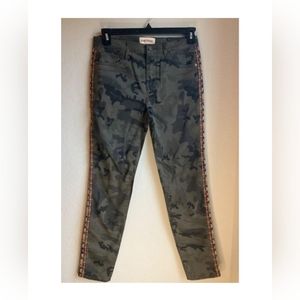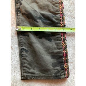 Driftwood Jackie women's pants size W27 L28 camo print embroidered sides, front and back pockets, very good condition, high waist, Material Cotton, Polyester and Spandex