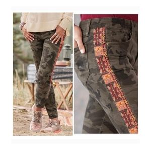 Driftwood Jackie womens pants size W27 L28 camo print embroidered sides