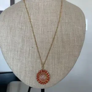 Gorgeous pendant necklace with gold detailing. Approximately 11” long (refer to photo of measurement).