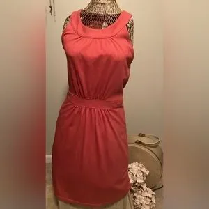 Ann Taylor LOFT Sleeveless Dress • Size: XS • Color: Coral /Burnt Orange • 60% Cotton/40% Modal • Banded Collar & Waist • Lightweight Cotton Blend • Button Closure at Back Neck with Keyhole