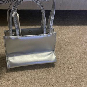 Featuring a double strap (handles and cross-body straps), embossed logo, and magnetic snap closure. Made from faux leather and twill lining. Bag is packaged in a drawstring bag with screen-printed logo.