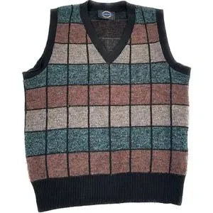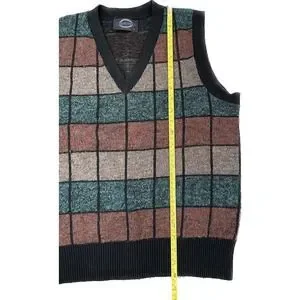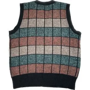 Vintage Jantzen Wool Acrylic Check USA Medium Vneck Sweater Vest VTG