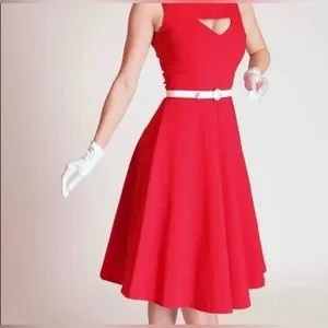 Bettie Page Jazmine Keyhole Pinup Red & White Dress Swing Dancing