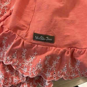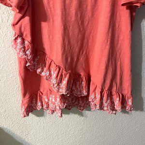 Matilda Jane Eureka Springs Embroidered Ruffle Top Size Small Coral Eyelet Tee