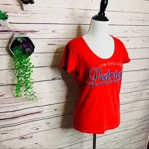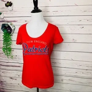 Soft and comfortable NFL Football New England Patriots Red & Blue Ladies Fitted Short sleeve scoop neck T-Shirt Women’s Size Medium. Perfect for game days and tailgating events! Excellent condition!