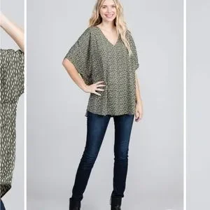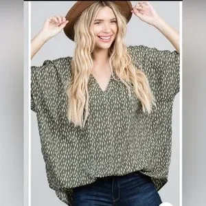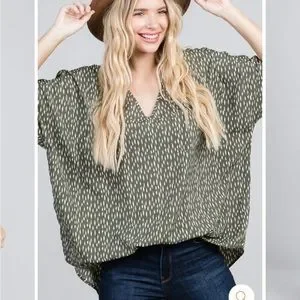 New, never worn. Jodifl brand. Size is L/XL but runs large. SO flowy and oversized. Olive green with with dot detail.