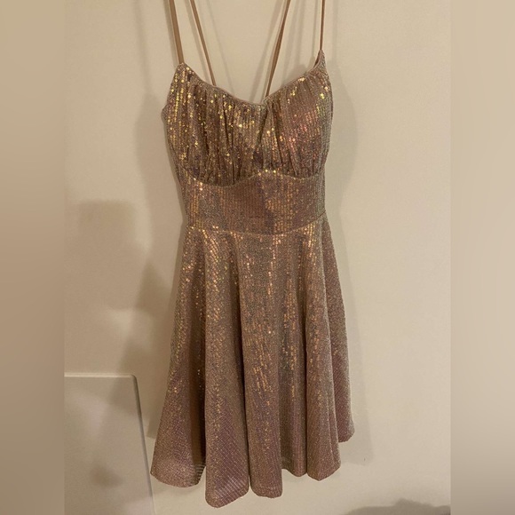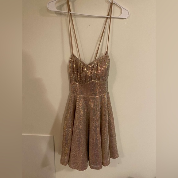 NEW Privy Womens Latte Danity Metallic Mini Dress, Sz M