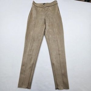 Zara Women Faux Suede Leggins Size Small Color Brown Tan Elastic Waistband Comfy
