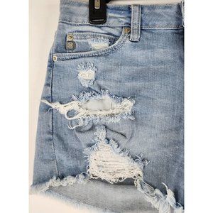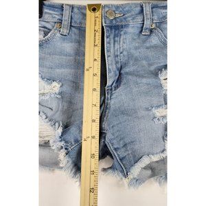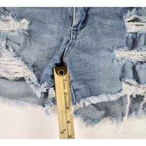 Just USA Shorts Womens Medium Blue Denim Preppy Frayed Ripped Distressed Pockets