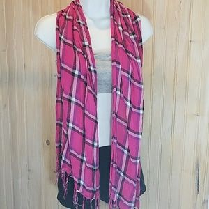 Pink Plaid Scarf with Fringe