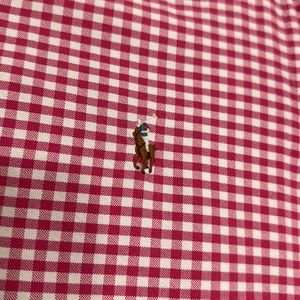 Excellent condition gingham plaid button down. No rips or stains. Pinkish red color. Size medium.