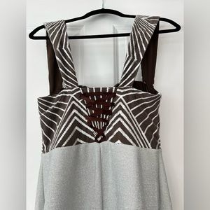 Brand new with tags michel laperle dress size 6. Silver bottom with a nice brownish corset top. Zipper down the right side of the dress.