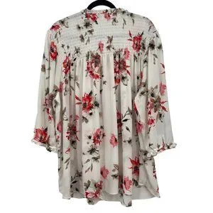 Rose + Olive Plus Size 3X Smocked Floral Top Bishop Puff Sleeve Flowy Blouse