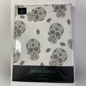 NWT HALLOWEEN TABLECLOTH. CYNTHIA ROWLEY Skulls 70” Round. 100% Cotton