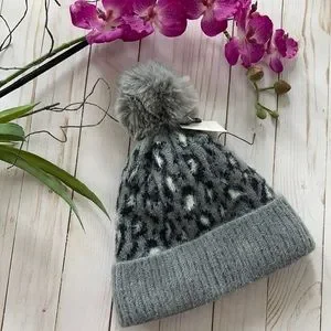 Leopard Print Fuzzy Pom Pom Beanie. Super fun, super soft and on trend. Fleece lined inside. Grey & black colors. 50 acrylic 50 nylon. One size fits most. New boutique item.