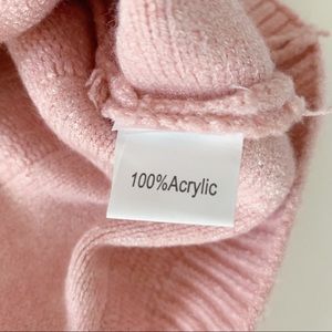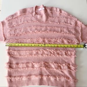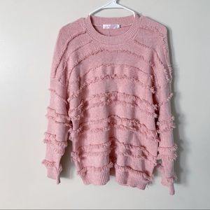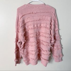 Knitted belle crew neck fringe sweater pink size small