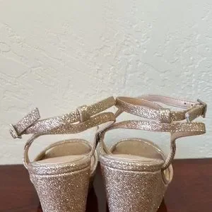 Badgley Mischka gold glitter wedges, size 7.5, EUC