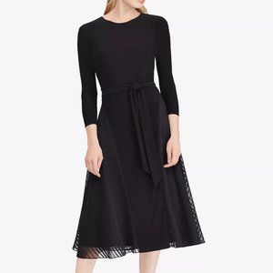 LAUREN RALPH LAUREN Satin-Trim Midi Fit & Flare Dress in Black