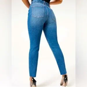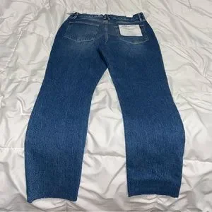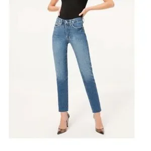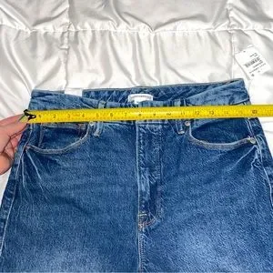 NWT Good American Good Classic Slim Straight Jeans sz 12 31 Medium Blue Raw Hem