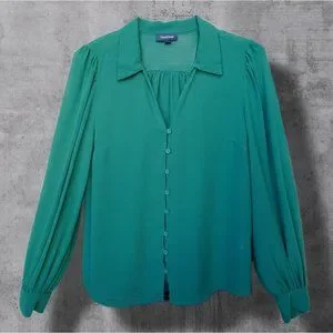 Modcloth Jade Green Sheer Chiffon Buttoned Blouse sz M