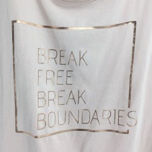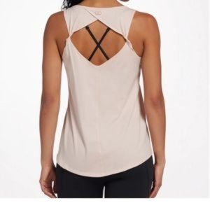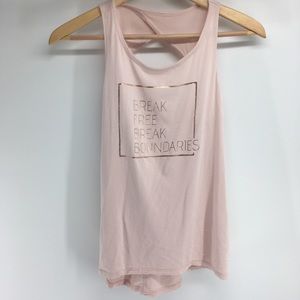 CALIA by Carrie Underwood Flow Break Free Break Boundaries light pink twist back strap Graphic Tank Top.