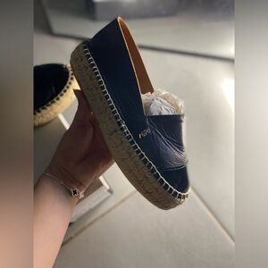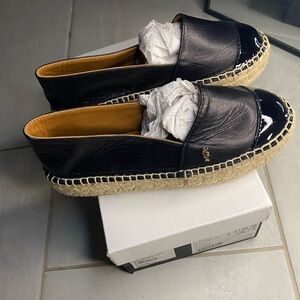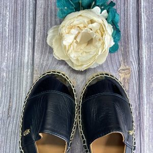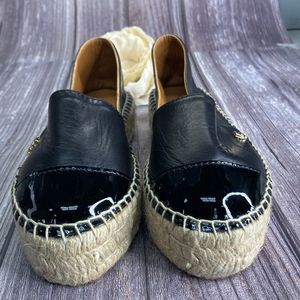 New Kurt Geiger Morella Black Leather Platform Espadrille Flats 38M
