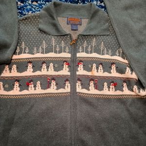 Woolrich Sweater Full Zip Up Cardigan With Snowmen
