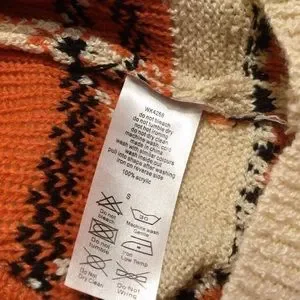 Perfect for Halloween, cute pullover cream colored with orange and black designs on front and back of sweater.