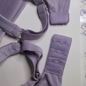 A light purple Hanes tshirt bra, gently used, sized 36 C, wireless nylon, spandex hooks and eyes in good condition, j hook for converting into racerback bra in good condition
