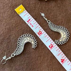 Silver tone boho statement earrings with an antique faux finish.