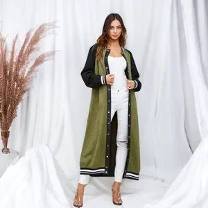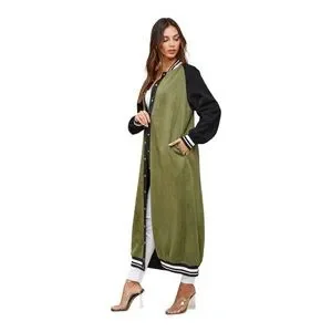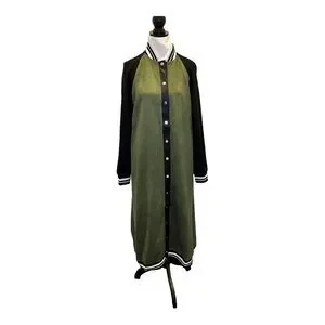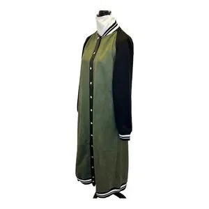 SoNo Chic Varsity Faux Suede Green Maxi Front Snap Jacket