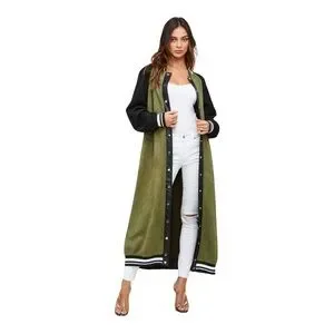 With a varsity-inspired silhouette, this maxi jacket offers a timeless style. Enjoy exceptional comfort and style.