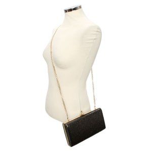 The Verona Black Reptile Leather Box Clutch Bag is part of the New Season collection from Vivienne Westwood. This simple yet chic style is crafted from premium leather in a reptile design with gold tone hardware. Secure push lock fastening featuring signature VW orb makes a statement. Go hands free with the detachable chain for the perfect day to night style.