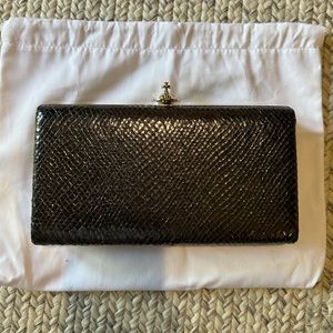 100% auth VIVIENNE WESTWOOD Verona Black Reptile Leather Box Clutch Bag