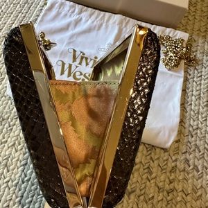 Goes well with all types of party/ evening dress. Comes with dust bag and original box. Gold tone hardware. This is a very rare VIVIENNE WESTWOOD bag.