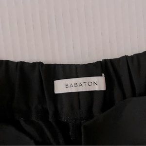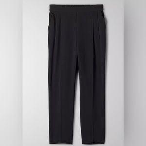 Black trouser pull on pant by Aritzia. Babaton brand. Two working pockets. Back elastic waist. Ankle length. Made from alterado material, a Japanese fabric. Pleated front. Size is not on tag but measured as a 4.