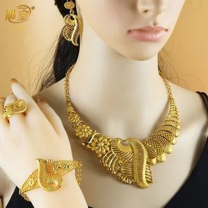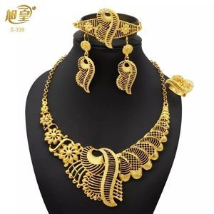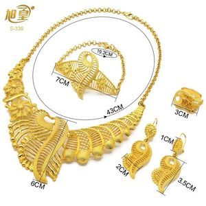 African Gold Fine Necklace Jewelry Set Nigerian Bridal Wedding Flower Pattern Accessories Arab Women Jewelry Gift