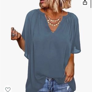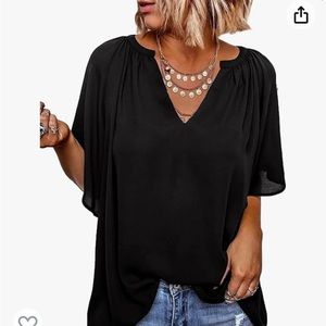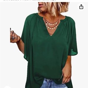 FOUR Women’s Chiffon Blouses Bell Sleeve Shirt Loose V Neck Pleated Tunic Top