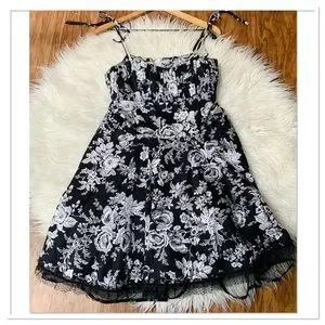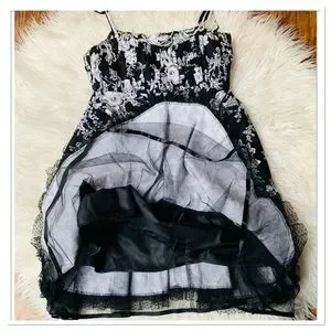 Spaghetti Tie Strap Lined Lace Polka Dot Hem Tulle Black White Floral Pin Up Dress By Voodoo Vixen Size Extra Large