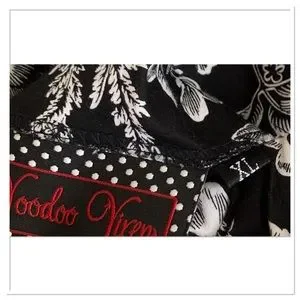Voodoo Vixen Pin Up Dress Black White Floral Polka Dot Lace Trim Size XL