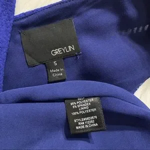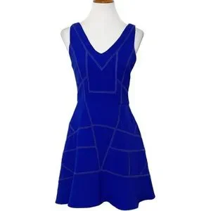 Style tags: Womens dress, knee length, fit and flare, tank dress, skater, A line, ruffle, ruffled, embroidered, embossed, jacquard, v neck, scoop neck, sleeveless, geometric, abstract, aboriginal, mosaic, marbled, eyelet, laser cut, ponte, ponte knit, scuba, casual, office, career, work, dressy, party, special occasion, night out, cocktail, blue, navy blue, cobalt, cobalt blue, sapphire, indigo, royal, jewel tone, greylin, size small