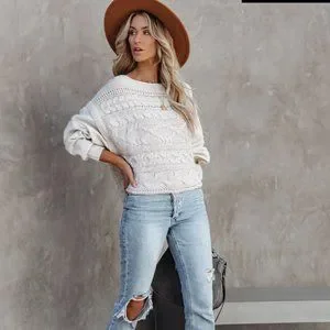 VICI Womens NWOT Chandy Cotton Blend Cable Knit Sweater MEDIUM Relaxed Fit
